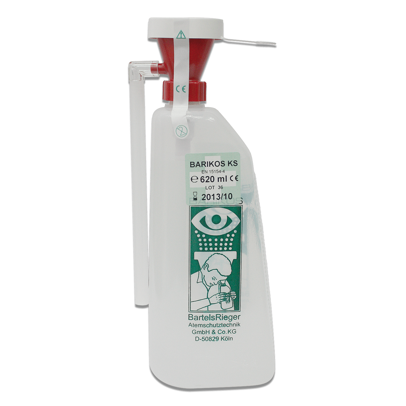 Zur sofortigen Spülung der Augen am Unfallort bei Verätzungen, gefüllt mit keimfreier Lösung, Inhalt 620 ml.