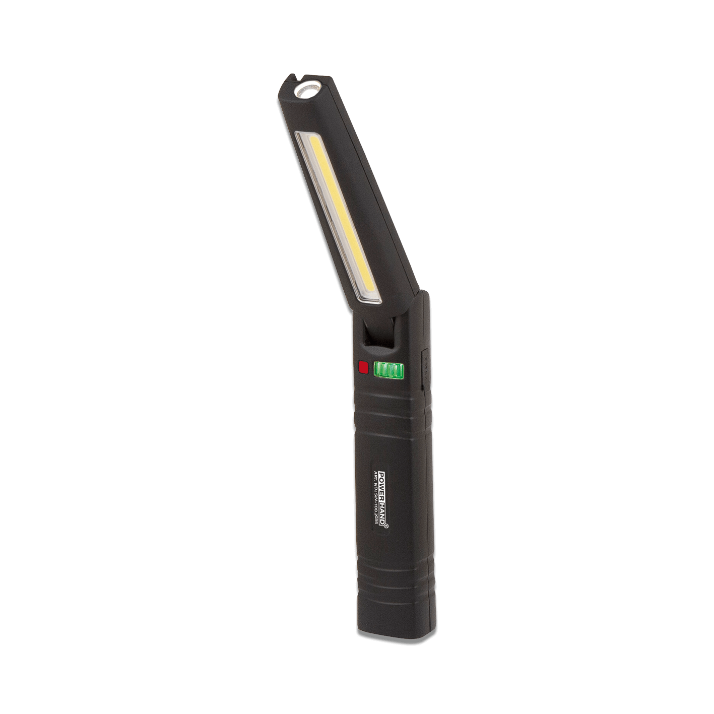 2 LED-Handleuchten für den Werkstatt-Profi. Mit Li-Ionen Akku und zweifacher Schaltung. Die Leuchten sind als Taschenlampe nutzbar und sind sowohl zur punktuellen Ausleuchtung, als auch zur großflächigen Ausleuchtung mit 6 W COB SMD-LED, einsetzbar. Die Leuchte zeichnet sich durch eine extra schlanke Bauform mit Ladezustandsanzeige, Magnetfuß und Aufhängehaken sowie einer drehbaren Funktion aus. Zudem sind die Handleuchten spritzwassergeschützt und schwenkbar um 180°.
