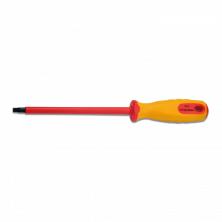 Der Schraubendreher T30 x 150 mm von SW Stahl ist ein hochwertiges Werkzeug für Elektroinstallationen. Er entspricht den Normen der DIN EN/IEC 60900 und ist somit für Arbeiten an elektrischen Anlagen bis 1000V geeignet. Der T-Profil-Schaft des Schraubendrehers ermöglicht eine bessere Kraftübertragung und reduziert das Risiko des Abrutschens beim Schrauben. Der Griff des Werkzeugs ist mit einer 2-Komponenten-Beschichtung versehen, die für einen ergonomischen Halt sorgt. Die Kombination aus rutschfestem Material und angenehmer Haptik erleichtert das Arbeiten und vermindert die Ermüdung der Hand. Insgesamt ist der Schraubendreher T30 x 150 mm ein zuverlässiges Werkzeug für den täglichen Einsatz.