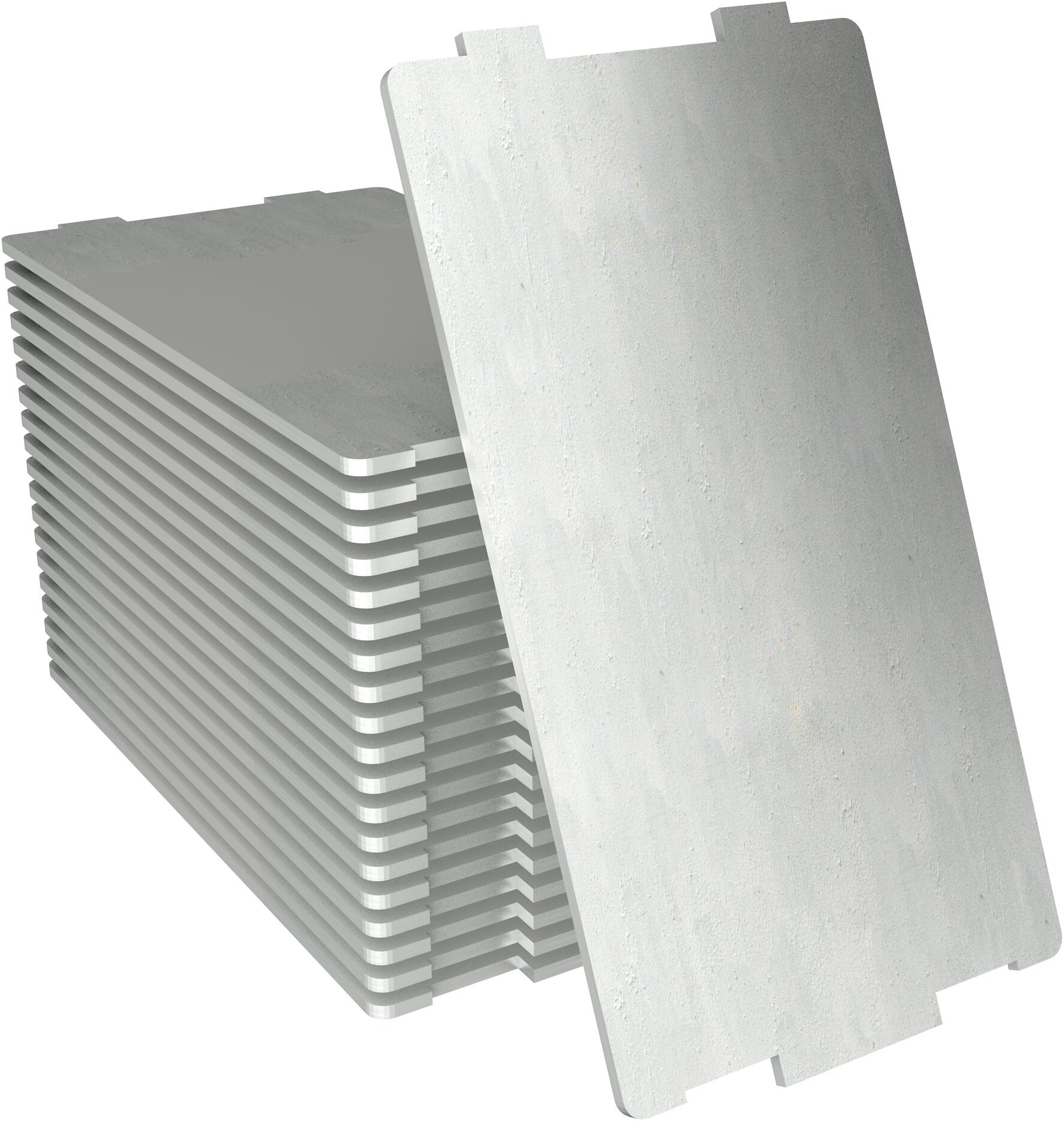 - Asymmetrische Stanzung ermöglicht Aneinandersetzen der Einteilbleche innerhalb einer Zeile